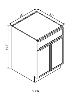 SINK BASE 36"Wx24"Dx34-1/2"H-2D-1FALSE DRAWER