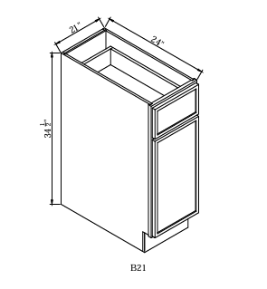 BASE CABINET 21"Wx24"Dx34-1/2"H-1D-1DR-1S