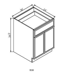BASE CABINET 30"Wx24"Dx34-1/2"H-2D-1DR-1S