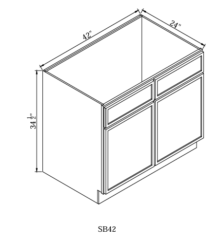 SINK BASE 42"Wx24"Dx34-1/2"H-2D-2FALSE DRAWER